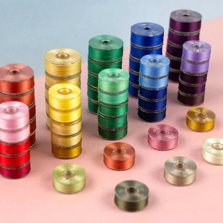 Les canettes pré-enroulées WonderFil sont enroulées avec notre fil DecoBob™ 80wt dans une bobine en plastique réutilisable, ce qui signifie qu'il n'y a pas de colle ou de cire qui les maintient ensemble